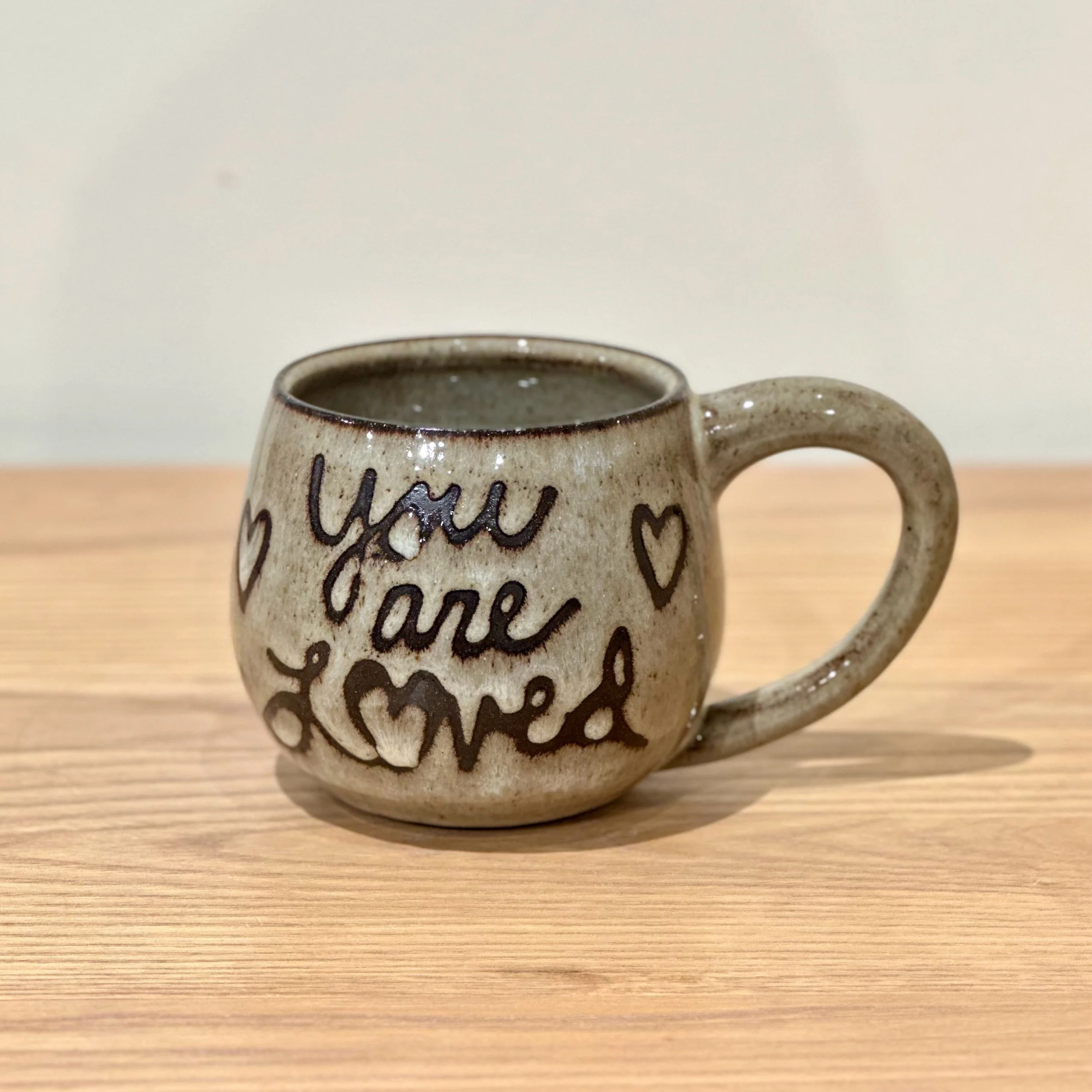 Shop › You Are Loved Mug Small Image 1 of 2 Image 2 of 2 You Are Loved Mug Small $50.00 Made in Charlotte after HeleneYou are LovedYou Belong10oz Add To Cart Added! Made in Charlotte after HeleneYou are LovedYou Belong10oz