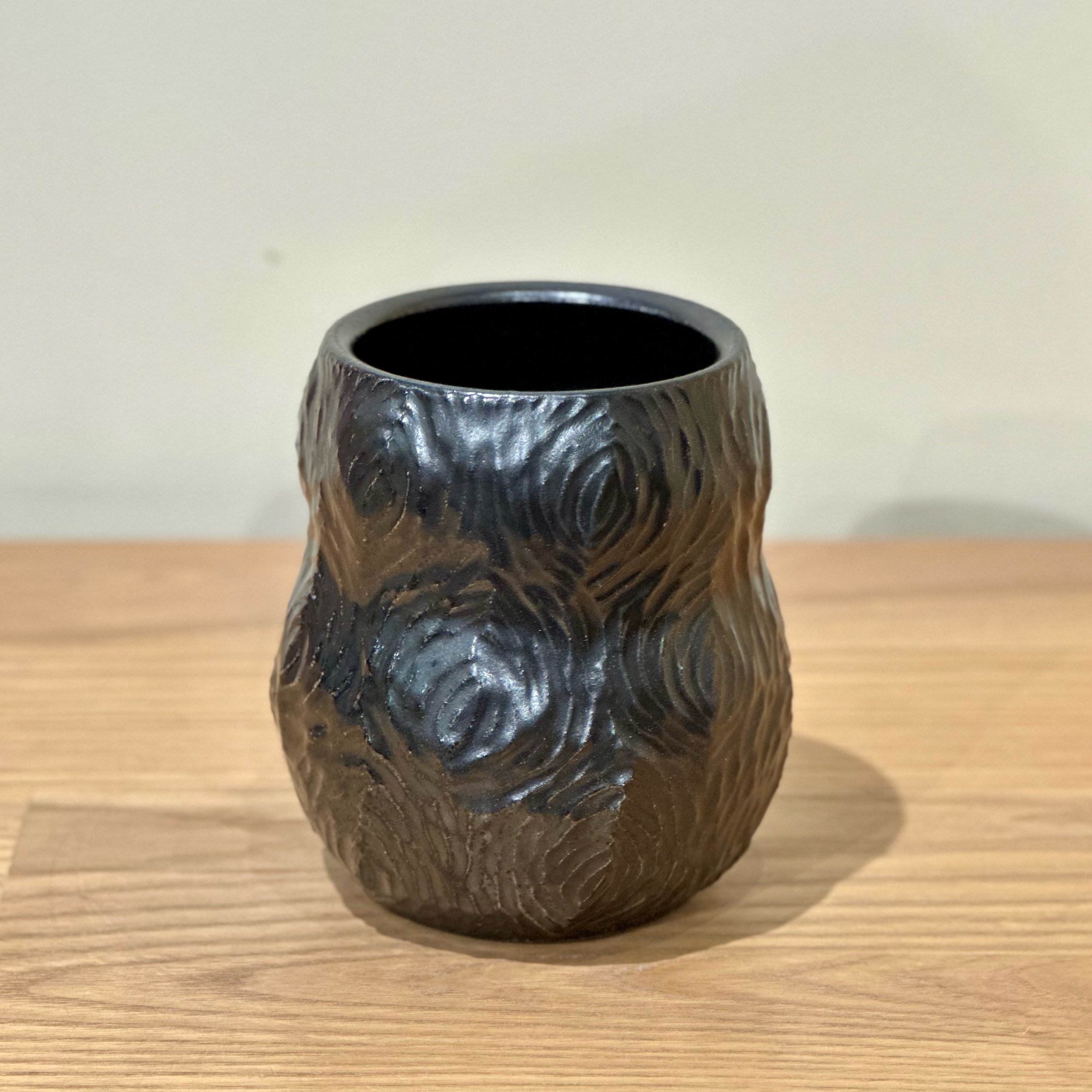 This black glaze is really shinny and hard to photograph - this one turned out slightly more matte but still has a shine